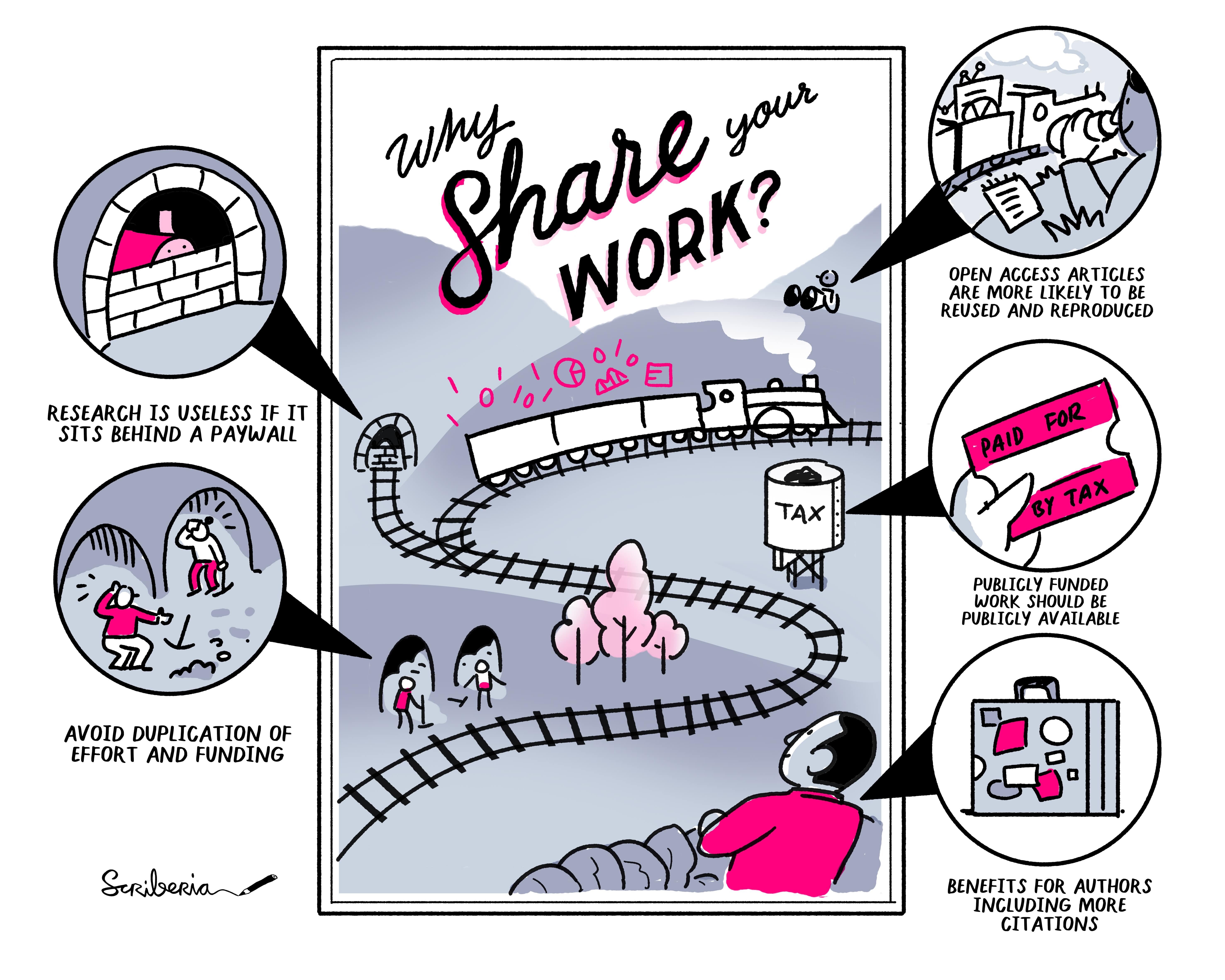 There is no ‘correct’ way to do Open Access and there are many different routes to sharing your research openly - we have shared 3 below that may help you. However, deciding on whether to share your research openly may depend on how prominent Open Access is in your field of research, how many resources you have to do this and whether there are restrictions or mandates from your funder or institution.